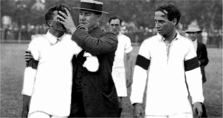 | A estrela brasileira Friedenreich sai do campo com... menos dois dentes! |